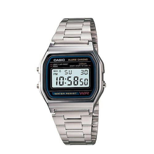 Relógio Casio Vintage Unissex Prata Digital A158WA-1DF Quem já possui objetos vintage na decoração de casa ou no guarda-roupas sabe o charme que essas peças dão no dia a dia. Que tal levar todo esse charme para o seu pulso? A Casio, marca líder em relógios de pulso no Brasil, tem uma linha retrô superestilosa, pensada para levar a todos os seus momentos mais requinte e sofisticação, sem deixar de lado o toque descolado e peculiar das décadas passadas. Esse Relógio Digital unissex da Casio tem a garantia da qualidade de uma marca superconhecida em relógios. O Casio Vintage é perfeito para a mulher que gosta de estar sempre elegante. Com você em todos os momentos. O Casio Vintage unissex é à prova dágua, por isso vai com você para todos os lugares, e seu design elegante combina com qualquer roupa que você queira usar e o mostrador com iluminação em LED é outro diferencial. Pulseira em ano inox. O aço inoxidável da pulseira desse relógio é outro elemento que dá muito charme. Além disso, possui fecho também em aço inox, vidro com resina e alarme, para você nunca perder nenhum compromisso.
