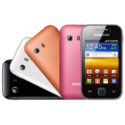 Celular Samsung Galaxy Y Color Plus com Android 2.3, milhares de aplicativos grátis e processador de 832 Mhz.