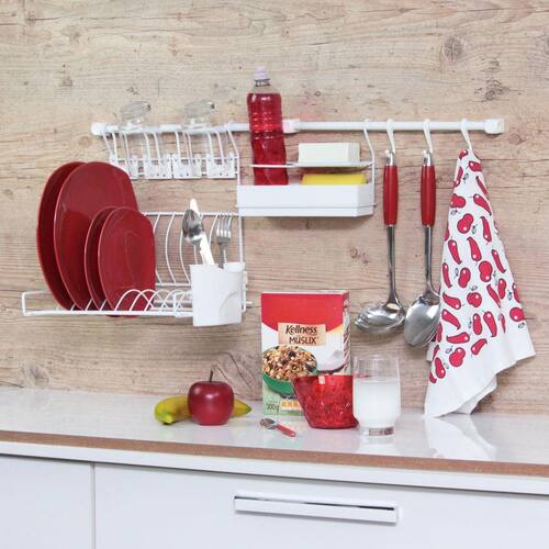 Com o kit Linha Requinte sua cozinha se transforma, ficando muito mais sofisticada e organizada. Deixe seus objetos dispostos com elegância poupando espaço na sua bancada. Uma solução, que é de fácil instalação. Este Kit contém: 1 Escorredor de pratos- Suporta até 4,0 kg distribuído. 1 Porta Detergente - 3 Ganchos - 2 Barras 36cm.