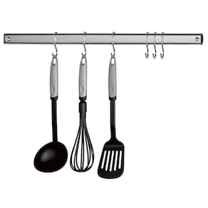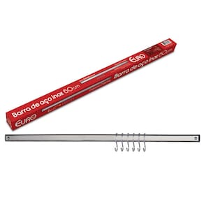 Com a barra de Aço Inox da Euro Home você poderá organizar tudo que você precisar em sua cozinha, ele é feita de material resistente e possui 6 ganchos para você pendurar colheres, escumadeiras, pegadores, conchas, pano de pratos e tudo que a sua imaginação permitir.