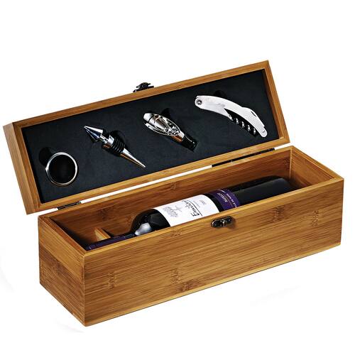Acessórios para Vinho Welf Veneto com Estojo em Bambu PV-00903 - 4 peças
