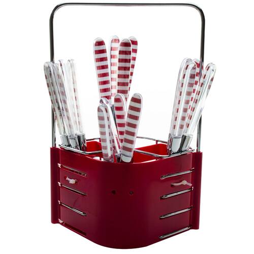 Prepare uma deliciosa refeição e sirva seus convidados com o Faqueiro Bon Gourmet - Branco e Vermelho. Ele conta com cabos em polipropileno com um design divertido e colorido para alegrar ainda mais suas ocasiões. Peças feitas em metal resistente, fáceis de limpar e com acabamento perfeito. Ideal para as refeições diárias.