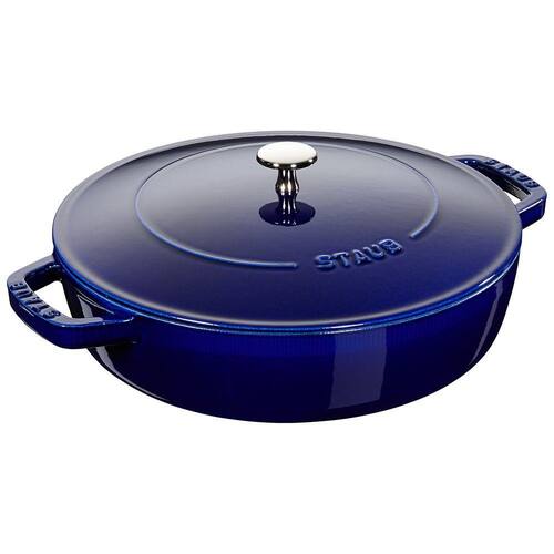 Caçarola Redonda Baixa Chistera Multifuncional Ferro Fundido 28 cm Azul Marinho Staub