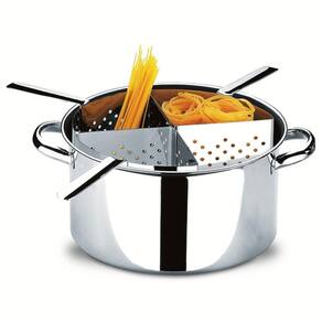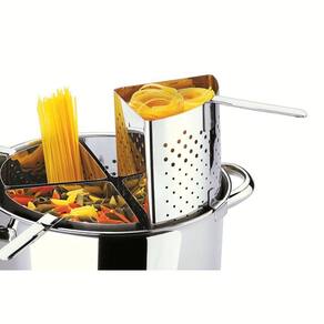 Faça suas massas com muito mais facilidade com a Espagueteira Savoy da Suprema. Contando com quatro cestos escorredores independentes e uma panela de aço inox, a espagueteira permite preparar e escorrer diferentes tipos de massa ao mesmo tempo. Por ser confeccionado em aço inox, o utensílio é altamente resistente e não possui porosidades, o que torna sua alimentação mais saudável, já que não libera resíduos nos alimentos, e facilita na limpeza.