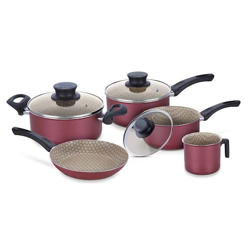 Um conjunto de panelas super prático e com peças essenciais para o seu dia a dia na cozinha. São 5 peças feitas em alumínio com 5 camadas de revestimento antiaderente, que não deixa os alimentos grudarem, e tampa em vidro temperado com saída de vapor. O Conjunto de Panelas Tramontina Paris 20599760 Vermelho - 5 Peças não pode faltar em sua cozinha!
