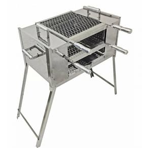 Material Fabricada em chapas de aço inox 430 com 0,6 mm de espessura garantindo maior durabilidade e resistência; As grelhas em aço inox 430 a tela moeda tem 1,5 mm de espessura para garantir sua maior durabilidade; Os cabos e alças são de madeira revestido com alumínio, para manusear tanto a churrasqueira quanto as grelhas sem se queimar a mão.