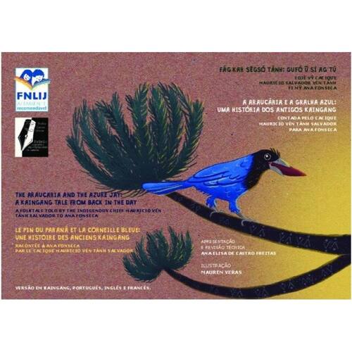 Organizar um livro que conta uma história dos antigos Kaingang demanda muito cuidado, delicadeza e respeito. O livro reconta para o público infantil uma história que é relatada pelos Kaingang há muitas e muitas gerações. Eu ouvi a história do próprio cacique Maurício Ven Tánh Salvador, que a contou para mim e muitas outras pessoas, enquanto estávamos sentados em roda, sob a copada de uma árvore centenária. O contar também foi compartilhado, pois, de tempos em tempos, ele confirmava com os demais, em Kaingang, algum aspecto da história. A história foi reportada para nós em português, que é a minha língua materna, e aprendida pelo cacique Maurício como língua adicional. Eu não falo Kaingang e nada entendo. Como autora, me coube escrever literariamente tão bela história! Ao longo de todo o processo, o cacique Maurício foi consultado muitas vezes. A versão final da história, a escolha do tipo de ilustração, a escolha do tamanho do livro, a divisão dos parágrafos, a inclusão dos desenhos feitos por diversos Kaingang, os lançamentos, etc., tudo foi sugerido e escolhido coletivamente, mas a decisão final foi sempre do Cacique Maurício. Nós oferecíamos opções, ouvíamos demandas, oferecíamos novas opções, ouvíamos novas demandas. Desse ir e vir na Serra Gaúcha, surgiu o livro. No total, há cerca de 20 pessoas envolvidas na sua escrita. A minha preocupação principal, para além da qualidade do livro, enquanto conjunto de texto e imagens, era que o cacique Maurício, que falava conosco em nome de uma coletividade, estivesse plenamente de satisfeito com a maneira como a história que me foi relatada por ele e que é tão importante para a sua cultura estava sendo apresentada publicamente para todos nós. Respeito foi a palavra que norteou as escolhas feitas ao longo do processo de escrita desse livro, que trata da importância da vida em comunidade, do valor da palavra, em especial, quando decorre de escolhas que nós próprios fazemos, de como as aparências podem enganar, bem como da existência de vínculos eternos, tais quais o da araucária e da gralha azul. Ana Fonseca Autora do texto em português e organizadora do livro Notas sobre escrita e oralidade O cacique Mauricio Ven Tánh Salvador narrou a história A araucária e a gralha azul: uma história dos antigos Kaingang para Ana Fonseca em volta de uma fogueira, em língua portuguesa. Entretanto, ao evocar as imagens mobilizadas na narrativa, cacique Maurício acionou o fluxo do Jykre, o pensamento Kaingang. A memória originária evocada nesse ato reacendeu as labaredas da fogueira em torno da qual o cacique Maurício ouviu essa história pela primeira vez, contada por seu pai, o memorável cacique Zílio Jagtyag Salvador, que narrou a história em sua língua materna, a língua Kaingang. A língua portuguesa é a segunda língua do cacique Maurício, e é natural que a transposição oral da narrativa em língua indígena para a língua portuguesa resulte na perda de nuances que em Kaingang expressam a cosmovisão do Jykre. Cientes do desafio implicado na tarefa intertextual, a transcrição da narrativa oral exigiu um esforço colaborativo, e muitas conversas com os autores foram necessárias para chegarmos à versão final. Na revisão, recuperamos alguns termos da língua Kaingang, buscando devolver ao texto a materialidade da língua indígena e revelar a poética intercultural presente na cena do diálogo entre Maurício e Ana, momento em que se deu a semeadura deste livro. Ana Elisa de Castro Freitas Revisão Técnica