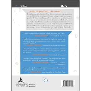 “Nada foi provado contra ele!” Décadas de evidências científicas demonstram que, depois de apoiar um político, as pessoas fazem de tudo para proteger uma imagem positiva de si mesmas, fabricando as mais bizarras justificativas para manter suas crenças intactas, principalmente quando descobrem estar erradas. Luiz Gaziri leu milhares de artigos científicos e visitou os cientistas mais influentes do mundo em instituições como Harvard, Stanford e Cornell para desvendar os vieses que cegam as pessoas para a realidade e analisa as ferramentas que as livram dessa armadilha. “Grande ciência, grandes histórias, grande sabedoria. Não perca!”— DANIEL GILBERT, Universidade de Harvard “Melhor do que qualquer livro que já li. Explica as muitas maneiras pelas quais nos enganamos e como podemos ver o mundo com mais precisão.”— ROBERT CIALDINI, Universidade do Estado do Arizona “Este soberbo professor e mestre do comportamento humano nos faz pensar sobre como buscamos a liderança dentro e fora de nós mesmos.” — VICTOR CARRION, Universidade de Stanford “Aprenda como deixar de se enganar e não deixe mais que quem você é hoje o impeça de ser quem você pode ser.”— RICARDO AMORIM, Economista e Colunista da revista IstoÉ “Ler o relato de Gaziri pode deixá-lo desconfortável, mas ouvir suas soluções lhe dará esperança.”— DANIEL PINK, autor Best-seller do New York Times Ean: 9788550822365