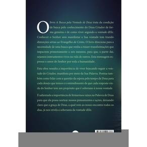 O livro A Busca pela Vontade de Deus trata da condição de busca pelo conhecimento do Deus Criador de forma genuína e de como viver segundo a vontade dEle. Conhecer o Senhor sem manifestar a Sua vontade tem trazido distorções sérias ao Evangelho de Cristo. O livro direciona para a necessidade de uma busca que venha a trazer transformações que impactem primeiramente a nós mesmos, para que, a partir daí, sejamos instrumentos vivos na vida de outros. Esta mensagem expressa o amor do Senhor por toda ahumanidade. Esta obra ressalta a importância de viver buscando seguir a vontade do Criador, manifesta por meio da Sua Palavra. Pontua também como lidar com a questão da espera pelo tempo de Deus para cada desejo que temos e o entendimento de que cada resposta vinda do Senhor tem um propósito que é soberano à nossa vontade. É salientada a importância de firmarmos raízes na Palavra de Deus para que ela possa nortear nossos pensamentos e ações, deixando claro que a graça de Deus, a qual vem ao nosso encontro todos os dias, já nos revela a soberania da vontade dEle.