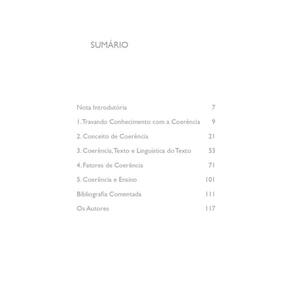 Expõe a constituição dos sentidos nos textos e seus fatores: os elementos linguísticos, o conhecimento do mundo, as inferências e a situação. Apoiado em exemplos bem escolhidos, traduz em miúdos a complexa propriedade da coerência textual, sendo de grande auxílio para professores de Português, vestibulandos e universitários dos cursos de Letras e Comunicação. Marca: CONTEXTO UNIVERSITARIO