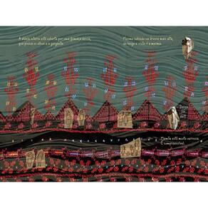 O que há no lado de lá da vida? Por entre linhas, bordados, tramas e costuras, a menina Lila conduz os leitores em uma aventura fascinante em busca do que se perdeu no lado de cá e do que acontece no avesso do mundo. Lila é uma menina criativa, sonhadora e um pouco distraída. Sua mãe sempre reclama que ela deveria cuidar melhor de suas coisas pois vive perdendo tudo. Lila, então, imagina uma teoria de que os sumiços acontecem porque, com o tempo, nosso mundo deve ter produzido alguns buracos nos quais seus objetos acabam caindo. Suas chaves, guarda-chuvas e lápis de cor estariam, provavelmente, no Lado de Trás do bordado da vida, um lugar misterioso que sempre despertou a curiosidade da menina. A solução seria, então, fechar esses buracos no mundo costurando cada um deles. Esse é o começo de uma grande confusão! A costura foi criado originalmente para o projeto Palestinian Art History as Told by Everyday Objects , produzido pelo Palestinian Museum. É inspirado nos bordados tradicionais da cultura palestina. Indicado para leitores a partir dos 6 anos.
