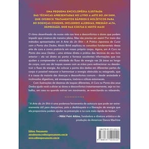 Esta obra traz uma síntese direta e prática das técnicas apresentadas em seu livro anterior – A Arte do Jin Shin, oferecendo tratamentos rápidos e holísticos para 80 doenças comuns, incluindo alergias, pressão alta, depressão, dor nas costas e muito mais. Uma pequena enciclopédia ilustrada com dezenas de toques diferentes, trazendo excelentes informações que nos ajudam a compreender a atividade do fluxo de energia nas 26 áreas ao longo do corpo, com uso de toques suaves com as mãos para redirecionar ou desobstruir o fluxo de energia.