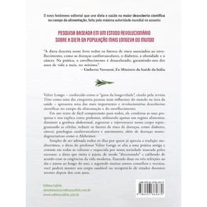 Neste livro, Valter Longo – conhecido como o “guru da longevidade”, apresenta uma das mais importantes e revolucionárias descobertas científicas no campo da alimentação e do envelhecimento. Por meio de um texto de fácil compreensão, ele condensa todas as suas pesquisas e explica como diminuir a gordura abdominal, regenerar e rejuvenescer nosso corpo reprogramando as células, e reduzir os fatores de risco de diversas doenças utilizando apenas um regime alimentar. Simples de ser adotada, a dieta se alia a uma prática antiga e comum em todas as culturas e esquecida por nossa sociedade, marcada pelos excessos: a dieta que imita o jejum, de modo “direcionado” e calibrado de acordo com as exigências da vida moderna. Ean: 9786557362679