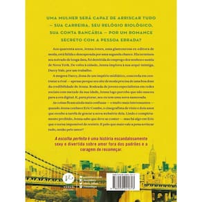 A escolha perfeita é uma história escandalosamente sexy e divertida sobre amor fora dos padrões e a coragem de recomeçar. Uma mulher será capaz de arriscar tudo — sua carreira, seu relógio biológico, sua conta bancária — por um romance secreto com a pessoa errada? Aos quarenta anos, Jenna Jones, uma glamourosa ex-editora de moda, está falida e desesperada por uma segunda chance. Ela terminou seu noivado de longa data, foi demitida do emprego dos sonhos e sumiu de Nova York. De volta à cidade, Jenna implora à sua arqui-inimiga, Darcy Vale, por um trabalho. A megera Darcy, dona de um império midiático, concorda em con¬tratar a rival — apenas porque seu site de moda precisa de uma boa dose da credibilidade de Jenna. Rodeada de jovens especialistas em redes sociais com metade da sua idade, Jenna logo percebe que não nasceu para a era digital. E, para piorar, seu ex tem uma nova namorada. As coisas ficam ainda mais confusas — e muito mais interessantes — quando Jenna conhece Eric Combs, o cinegrafista de vinte e dois anos que recebe a tarefa de gravar a nova websérie dela. Lindo e completa¬mente proibido, Jenna sabe que deve se conter — mas há algo em Eric que o torna impossível de resistir. E pelo que mais vale a pena arriscar tudo, senão pelo amor?