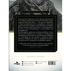 Inabalável. Ter uma vida abençoada, uma família feliz e se tornar um exemplo a ser seguido são alguns dos sonhos de conquista de muitos. Mas, para que isso aconteça, a disposição de entrega total nas mãos de Deus é mais do que necessária, é indispensável. Abraão experimentou muita frustração antes de se tornar o pai da fé e, mesmo enfrentando difíceis provas em sua vida, continuamente, ele renovou sua fé no Único Deus, mantendo uma fidelidade inabalável em Suas promessas. Em A Fé de Abraão, Edir Macedo traz um relato preciso sobre os passos do pai da fé, apresentando o antes, o durante e o depois do dia em que Abraão teve sua fé provada e aprovada.