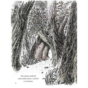 Mo está inquieto na cama e não consegue dormir. Uma luz misteriosa, que parece sorrir para ele, o convida a entrar na floresta — um lugar habitado por todo tipo de criaturas, algumas amistosas, outras assustadoras. Nessa caminhada, o curioso gato Mo fará amizade com o vovô coruja, que o encoraja a viver aventuras para além dos livros (ainda que seja sempre bom ter cautela). Também encontrará uma família de ratos, um esquilo e renas. Com uns, vai cozinhar; com outros, aprenderá a se preparar melhor para o caminho, a cumprimentar com gentileza, a falar sobre o que gosta — e também sobre o que o assusta. Juntos, enfrentarão imprevistos e aprenderão a deixar as preocupações de lado para aproveitar o momento. Uma história tão delicada e encantadora quanto as ilustrações feitas a nanquim, apresentada numa linda edição em capa dura.