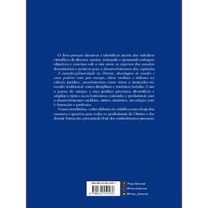 A interdisciplinaridade no Direito: abordagens de estudos e casos práticos tem por escopo, obter análises e debates na ciência jurídica, anteriormente eram vistos e ensinados no estudo tradicional, como disciplinas e temáticas isoladas. Com o passar do tempo, a área jurídica procurou diversificar e ampliar a óptica ou os horizontes, tornando o profissional com o desenvolvimento analítico, crítico, sistêmico, em relação com à formação e profissão.
