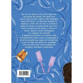 No teto do quarto, mora uma lagartixa que gosta de pensar. Ela observa a menina que perdeu o gato e não consegue parar de chorar. As lágrimas inundam o espaço, o chão vira um mar, e a menina quase se afoga na tempestade que criou. Como a lagartixa irá ajudar a menina a vencer aquele oceano esmagador e a resgatar seu animal? A lagartixa pensante e a menina triste é uma história sobre como a imaginação é uma força poderosa, capaz de transformar a dor em algo que pode ser navegado. Uma narrativa que trata também de coragem, amizade e superação. Marca: Não Informado