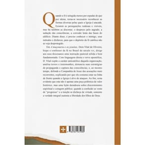Quando a fé é atingida menos por espadas do que por ideias, torna-se necessário reconhecer as formas diversas pelas quais a Igreja é atacada. Existem as perseguições ruidosas e visíveis, mas há também as discretas: o desprezo pelo sagrado, a sedução das consciências, a corrosão lenta das bases do edifício. Diante disso, é preciso conhecer o inimigo, seus métodos e disfarces, para que o depósito da fé católica não se veja desprotegido. Em A maçonaria e os jesuítas, Dom Vital de Oliveira, bispo e confessor da fé no Brasil do século XIX, dirige aos seus diocesanos uma instrução pastoral sólida e bem fundamentada. Com linguagem direta e verve apostólica, D. Vital expõe o caráter anticatólico daquela organização, analisa textos e testemunhos, denuncia suas estratégias de propaganda e captura das consciências, e, ao mesmo tempo, defende a Companhia de Jesus das acusações mais recorrentes, explicando por que ela costuma estar na linha de frente quando a Igreja é alvo de ataques. Ao fim, resta evidente que esta não é apenas uma peça polêmica de valor histórico, mas uma lição duradoura sobre discernimento espiritual e coragem pública: quando a confusão se veste de “progresso” e a traição se disfarça de virtude, somente a verdade integral sustenta a liberdade dos filhos de Deus. Marca: Não Informado