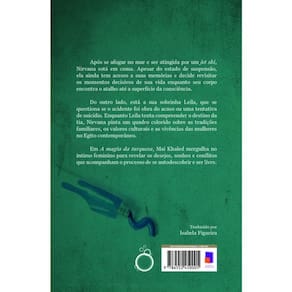 Após se afogar no mar e ser atingida por um jet ski , Nirvana está em coma. Apesar do estado de suspensão, ela ainda tem acesso a suas memórias e decide revisitar os momentos decisivos de sua vida enquanto seu corpo encontra o atalho até a superfície da consciência. Do outro lado, está a sua sobrinha Leila, que se questiona se o acidente foi obra do acaso ou uma tentativa de suicídio. Enquanto Leila tenta compreender o destino da tia, Nirvana pinta um quadro colorido sobre as tradições familiares, os valores culturais e as vivências das mulheres no Egito contemporâneo. Em A magia da turquesa , Mai Khaled mergulha no íntimo feminino para revelar os desejos, sonhos e conflitos que acompanham o processo de se autodescobrir e ser livre. Traduzido por Isabela Figueira