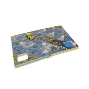 Ao longo do livro, a escavadeira percorre quatro pistas diferentes, enfrentando desafios reais do dia a dia: remover entulho de um canteiro de obras, limpar neve da estrada, cavar um lago e ajudar a consertar uma via movimentada. Basta dar corda e acompanhar a máquina em ação pelos cenários ilustrados.
