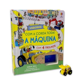 Características Técnicas Título: A Máquina com a Corda Toda Editora: Usborne Formato: Livro infantil interativo com carrinho Conteúdo: 4 pistas ilustradas Diferencial: escavadeira com mecanismo de corda Idioma: Português Indicação: crianças pequenas, especialmente fãs de veículos e construção
