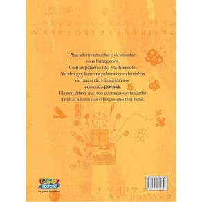 “Ana era uma menina que inventava de brincar com as palavras. As palavras escapuliam das caixinhas coloridas direto para a cuca da menina.” Este livro revela à criança o poder da criatividade, da brincadeira e da relação das coisas com seus nomes. As ilustrações coloridas e delicadas contribuem para fazer desta obra uma leitura que encantará aqueles que já descobriram, como Ana, o poder das palavras. Marca: Não Informado
