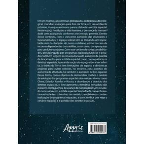 Em um mundo cada vez mais globalizado, as dinâmicas tecnológicas mundiais avançam para fora da Terra, em um ambiente próximo, mas que ainda nos parece distante: a órbita espacial. Neste espaço hostil para a vida humana, a presença da humanidade vem avançando conforme a tecnologia permite. Dentro desse contexto, com o crescente aumento das atividades e funcionalidades, o espaço sideral vêm se tornando um importante ator nas funções do nosso cotidiano, como no caso de recursos dependentes dos satélites, assim como para pesquisas para um futuro próximo. Com esse cenário de novas possibilidades, protagonizado por programas espaciais públicos e privados, também surgem as consequências do aumento da quantia de lançamentos para a órbita espacial, como consequência, os detritos espaciais. Apesar da noção do espaço sideral ser in¬nita, a órbita da Terra tem limitações de espaço e dinâmicas próprias para evitar colisões, no entanto, pela questão do aumento de atividade, há também o aumento de lixo espacial. Dessa forma, com o objetivo de demonstrar melhor o cenário de evolução dos programas espaciais dos maiores atores, como China, Estados Unidos e Rússia, e abordando a questão dos detritos espaciais, o livro apresenta a temática inovadora das possíveis consequência do avanço da humanidade sem o cuidado necessário com a órbita espacial. Sendo fonte para entusiastas e estudantes, o livro traz um cenário completo com contextualização de programas espaciais, a base jurídica que rege o cenário espacial, e a questão dos detritos espaciais.