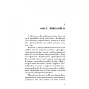 Hildebrando Pereira nos oferece um verdadeiro romance policial . A passarela da cabeça se passa em Canoas, cidade-irmã de Porto Alegre, a partir de um fato real acontecido no dia 2 de fevereiro de 1976. Passados quase cinquenta anos, o escritor deixa com seus personagens, a tarefa de elucidar o crime. E o faz recriando com cuidado Canoas e também Porto Alegre à época em que o assassinato foi cometido, numa ambientação perfeita dos personagens e da ação vertiginosa. Impossível tirar os olhos do texto, escrito com economia de palavras, mas capaz de revelar os mínimos detalhes. Leia um trecho: No meio da passarela, em um dos ferros de sustentação, encontra-se, caprichosamente pendurada, uma cabeça humana. Um pouco inclinada para baixo, com uma vasta cabeleira preta desalinhada e a tez morena clara, espreita a todos que por ali passam. As pálpebras, recobrindo parte dos olhos negros, denotam que aceita complacente o seu destino. O sangue coagulado na base e nas melenas denuncia que a decapitação não é recente. A cena horripilante lembra os filmes de Hitchcock. Nº págs 144 Selo BesouroBox Data Publicação 2024 Dimensões 14x21cm ISBN 9788555271397