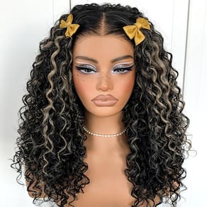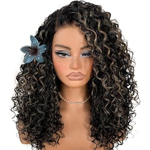MITIMES Destaques Peruca frontal encaracolada pré-arrancada para usar e não cola peruca preta e branca HD Lace Afro Peruca Kinky Curly Wig