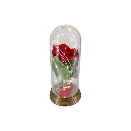 Cúpula A Rosa Encantada A Bela e A Fera Luminária M Linda Luminária inspirada na A Rosa Encantada do filme a A Bela e A Fera e do O Pequeno Príncipe. Encante a todos com essa linda luminária fabricada pela Loja Amor Lindo Boutique. Detalhes: - Luminária com 7 cm de diâmetro por 15 cm de altura; - Cúpula de acrílico Translúcido; - Base de plástico na cor ouro envelhecido; - Micro Luzes de LEDs / Luzes de Fadas que, funcionam com apenas 2 baterias CR 2032 (já inclusas); - Rosa Artificial aveludada de Plástico (idêntico ao natural e dura mais de 100 anos dentro da cúpula, é eterna);