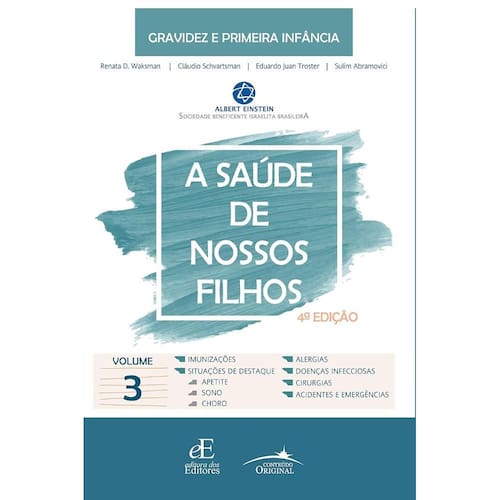 Estamos agora na quarta edição de A Saúde de Nossos Filhos, em formato de manual, dividido em quatro volumes e abordando os principais assuntos e questões que envolvem a primeira infância. O período decorrido entre a terceira e a quarta edições, de 8 anos, é longo se considerarmos a evolução da pediatria, o que nos fez apresentar esta edição revisada, atualizada, ampliada e adequada a todos os conceitos e informações atuais. Este é o terceiro volume e começa com a exposição detalhada e atual das imunizações, destacando as vacinas mais recentes, incorporadas aos calendários vigentes. A seguir, vem a seção das situações de destaque, em que ocupam lugar nos tempos atuais: meu filho tem alteração do apetite, não sai da frente das telas, não quer estudar, não obedece, é desatento, não dorme ou vive doente, entre outras. Pensando nos dias de hoje, alguns assuntos de saúde, sinais e sintomas não poderiam ser esquecidos, como as alergias, as doenças infecciosas atuais e antigas que, volta e meia, retornam, e as patologias que envolvem procedimentos cirúrgicos de abdome e genitais. Este volume chega à parte final apresentando e descrevendo as causas que mais matam nossas crianças a partir de 1 ano de vida - os acidentes, sem esquecer do mais importante na sua abordagem, que é a prevenção, além dos primeiros socorros e continua pelas principais emergências, como traumas em todos os segmentos corporais, parada respiratória e cardíaca, síncope e morte súbita, que pais e cuidadores podem, em algum momento, ter de enfrentar. Esta obra reflete o principal objetivo da série, o de que a Pediatria moderna não pode e não deve se restringir aos limites do hospital e deve trabalhar em ações de promoção da saúde e na prevenção de doenças, sempre junto da comunidade. Todo este esforço somente foi possível graças ao apoio decidido que a diretoria da Sociedade Beneficente Israelita Brasileira Hospital Albert Einstein sempre ofereceu às iniciativas do nosso Departamento Materno Infantil. Esp