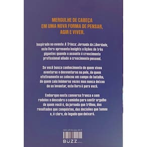 Sinopse Descubra do que você precisa para se tornar a melhor versão de si mesmo. Inspirado no evento A Trinca: Jornada da Liberdade, o livro apresenta insights e lições de três gigantes quando o assunto é crescimento profissional aliado a crescimento pessoal. Se você busca conhecimento de quem viveu aventuras e desventuras na pele, de quem efetivamente se colocou em campo de batalha, de quem caiu inúmeras vezes mas nunca deixou de se levantar, A Trinca é para você. Embarque numa conversa franca e sem rodeios e descubra o caminho para sentir orgulho de quem você é, da jornada que trilhou, dos resultados que conquistou, das decisões que tomou e, é claro, do legado que deixará.