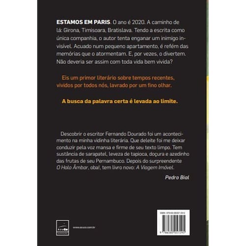 Recém saído de um casamento, o autor vai passar o réveillon na Espanha. O ano de 2020 começa com uma festa no átrio da catedral de Girona. Pronto para a retomada da vida, as agruras da meia idade não o desanimam a fazer o que mais gosta. Enquanto isso, chegam da China notícias sobre um vírus que ameaça desembarcar na Europa. Onde passar a chuva? Vivendo este impase na Hungria, ele escolhe Paris, a melhor opção para as semanas em que o medo dominaria o mundo. Semanas? Um ano mais tarde, o autor ainda estará lá. De trotamundo assumido, virou morador do Vème arrondissement, no coração da Rive Gauche. É disso que trata este riquíssimo "A Viagem Imóvel". Numa Paris sitiada pelo inimigo invisível, o imobilismo planetário não o impede de sonhar, divagar e rememorar uma vida trepidante que, como todas, também conheceu equívocos - nem sempre divertidos. Com a geografia reconfigurada, antenado nos boletins que informam pari passu a evolução da pandemia, nada o impede de nos levar a um casamento na Índia, a noites de bebedeira em Moscou e a tensas reuniões de negócios em Londres. Memorialismo e travel writing se fundem aqui num achado único. Mais do que um livro, "A Viagem Imóvel" é uma experiência transcendente.