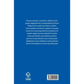 Poemas em prosa, rascunhos, reflexões sobre poesia, fragmentos de correspondência: Francis Ponge nos leva aqui à sua oficina criativa. Como podemos encontrar a palavra certa para transcrever nossa experiência da natureza, do mundo vegetal, do reino animal? O escritor revela seu método, mas também sua ética: para nos reconectarmos com o mundo, para ampliarmos nossa existência, nossas palavras não devem dominar as coisas, mas abraçá-las. “O que importa, em mim, é a seriedade com a qual me aproximo do objeto e, de outro lado, a grande justeza na expressão. Mas preciso me livrar de uma tendência a dizer coisas sem relevo e convencionais. Não vale a pena escrever se não for por isso.” (Ponge, "O pequeno caderno do pinhal")
