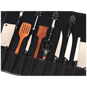 Pode ser como estojo de zenamento de facas zenando 10 facas de cozinha e outros acessórios. Também pode ser como suporte de utensílios. Pode conter facas de até 18 de comprimento
