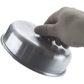 Abafador De Hambúrguer Ncg Utilidades Alumínio 15,5Cm Prata Abafador de hambúrguer Ncg utilidades alumínio 15,5cm Abafador de hambúrguer para uso residencial e comercial. Ideal para fazer com que queijos derretam por cima do hambúrguer e mantê-los mais suculentos de maneira eficaz e rápida. Pode ser de várias formas. Especificações do produto: Material do abafador: alumínio Cor: Prata. Altura total com o pegador: 6cm Altura sem o pegador: 4,3cm Material do pegador: baquelite Largura total: 15,5cm Largura da parte superior do pegador: 3,5cm Marca: Não Informado