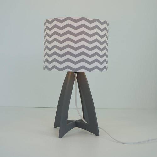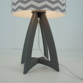 Abajur Base Madeira Cinza E Cúpula Chevron