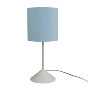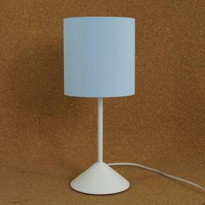 Abajur de mesa com base plástica na cor branca. Cúpula em tecido liso azul claro.Base em material plástico. Cúpula medindo 14,5 cm x 15 cm.Altura total: 34 cm Largura total: 14,5 cm Bivolt Usar lâmpadas fluorescentes ou de LED. Fio branco com plug liga e desliga. Soquete E-27.Ficha técnica- Cor da base: Branco- Largura total: 14.5 cm- Material da base: Plástico- Cor do abajur: Azul-claro- Diâmetro total: 14.5 cm- Cores: Branco e azul- Altura total: 34 cm