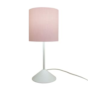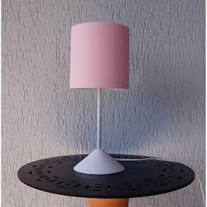 Abajur de mesa com base plástica na cor branca. Cúpula em tecido liso rosa claro.Base em material plástico. Cúpula medindo 14,5 cm x 15 cm.Altura total: 34 cm Largura total: 14,5 cm Bivolt Usar lâmpadas fluorescentes ou de LED. Fio branco com plug liga e desliga. Soquete E-27.Ficha técnica- Material da base: Plástico- Cor do abajur: Rosa- Largura total: 14.5 cm- Cores: Branco e rosa- Cor da base: Branco- Diâmetro total: 14.5 cm- Altura total: 34 cm
