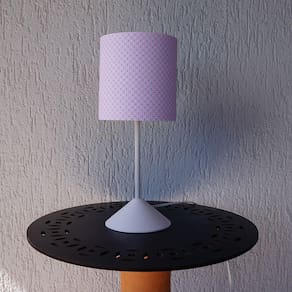 Abajur de mesa com base plástica na cor branca. Cúpula em tecido arabescos tons de rosa e branco.Base em material plástico. Cúpula medindo 14,5 cm x 15 cm.Altura total: 34 cm Largura total: 14,5 cm Bivolt Usar lâmpadas fluorescentes ou de LED. Fio branco com plug liga e desliga. Soquete E-27.Ficha técnica- Cores: Branco e rosa- Cor da base: Branco- Largura total: 14.5 cm- Diâmetro total: 14.5 cm- Altura total: 34 cm- Material da base: Plástico- Cor do abajur: Rosa