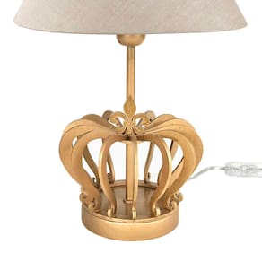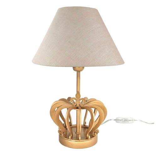 Este belo abajur de madeira é peça obrigatória na decoração de quartos infantis, que tenham estilo e bom gosto. Perfeito para ornamentar e proporcionar um efeito luminoso, que vai embalar o sono aconchegante dos pequenos Dados TécnicosAbajur com base de madeira dourada decorado com coroa e cúpula forrada com tecido. Lâmpadas SuportadasEconômicas/ LED: Qualquer LâmpadaIncandescente amarela : Até 40w por Soquete Medidas do AbajurDiâmetro da base: 17 cmAltura: 25 cm Medidas da CúpulaDiâmetro da Parte Debaixo: 20 cmDiâmetro da Parte de Cima: 8 cmAltura: 13 cmAltura Total: 35 cm