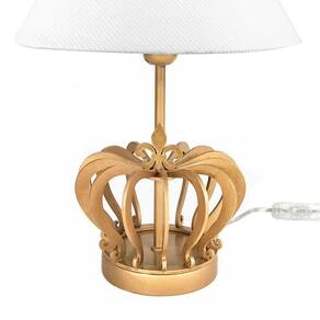 Este belo abajur de madeira é peça obrigatória na decoração de quartos infantis, que tenham estilo e bom gosto. Perfeito para ornamentar e proporcionar um efeito luminoso, que vai embalar o sono aconchegante dos pequenos Dados TécnicosAbajur com base de madeira dourada decorado com coroa e cúpula forrada com tecido. Lâmpadas SuportadasEconômicas/ LED: Qualquer LâmpadaIncandescente amarela : Até 40w por Soquete Medidas do AbajurDiâmetro da base: 17 cmAltura: 25 cm Medidas da CúpulaDiâmetro da Parte Debaixo: 20 cmDiâmetro da Parte de Cima: 8 cmAltura: 13 cmAltura Total: 35 cm