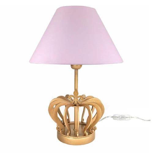 Abajur Coroa Dourada Cúpula Rosa Quarto Bebê Infantil Menina