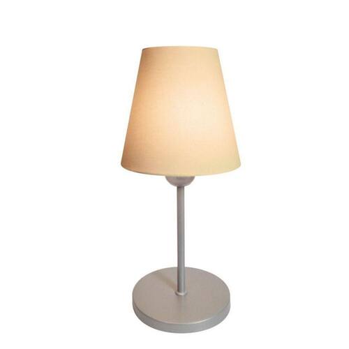 Abajur e Luminária de Cabeceira para Quarto e Sala Md-2005 Base Aluminio Cinza Cupula em Tecido Cone Algodao Cru