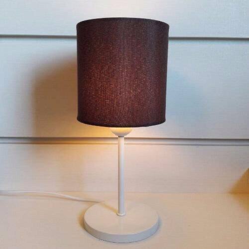 Abajur e Luminária de Cabeceira para Quarto e Sala Md-2010 Base Branca Cupula Tecido Cilindrica 14x15cm Cafe