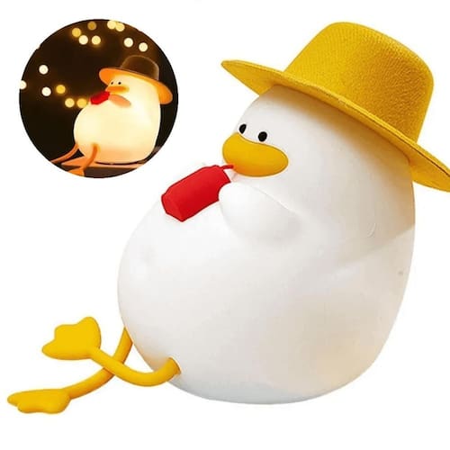 Abajur De Mesa Luminária Fofa Decoração Patinho De Silicone Abajur De Mesa Luminária Fofa Decoração Patinho De Silicone Luminária Patinho de Silicone com Chapéu - Luz Toque Colorido e Apoio de Celular Transforme o ambiente com essa luminária fofa, funcional e encantadora Com design de patinho e luz suave que muda de cor ao toque, a luminária Patinho é o item ideal para quartos infantis, presentes criativos ou uma decoração divertida e aconchegante. Além de iluminar, ela também serve como apoio de celular, com perninhas estáveis e um charmoso chapéu removível. Feita em gel de sílica, ABS e PC, é resistente, durável e segura para crianças - perfeita para quartos, salas ou escritórios Características Principais: Luz de LED colorida com sensor de toque