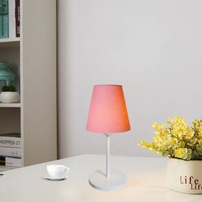 Abajur de Mesa Md-2005 Base Aluminio Branco Cúpula em Tecido Cone Rosa Bebê - Bivolt