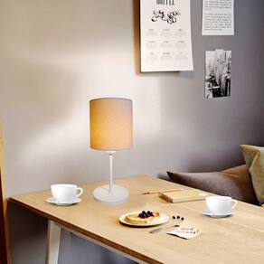 Abajur de Mesa Md-2010 Base Branco Cúpula em Tecido Cilindrica 14x15cm Algodão Crú - Bivolt