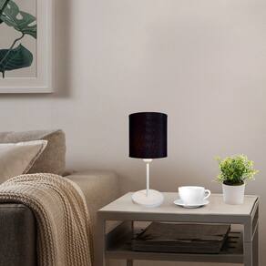 Abajur de Mesa Md-2010 Base Branco Cúpula em Tecido Cilindrica 14x15cm Preto - Bivolt